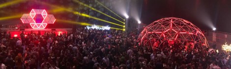 Os mostramos a continuación el resultado de unir un domo geodésico con luces de led controladas. Además el diseño del escenario principal basándonos en triángulos.
