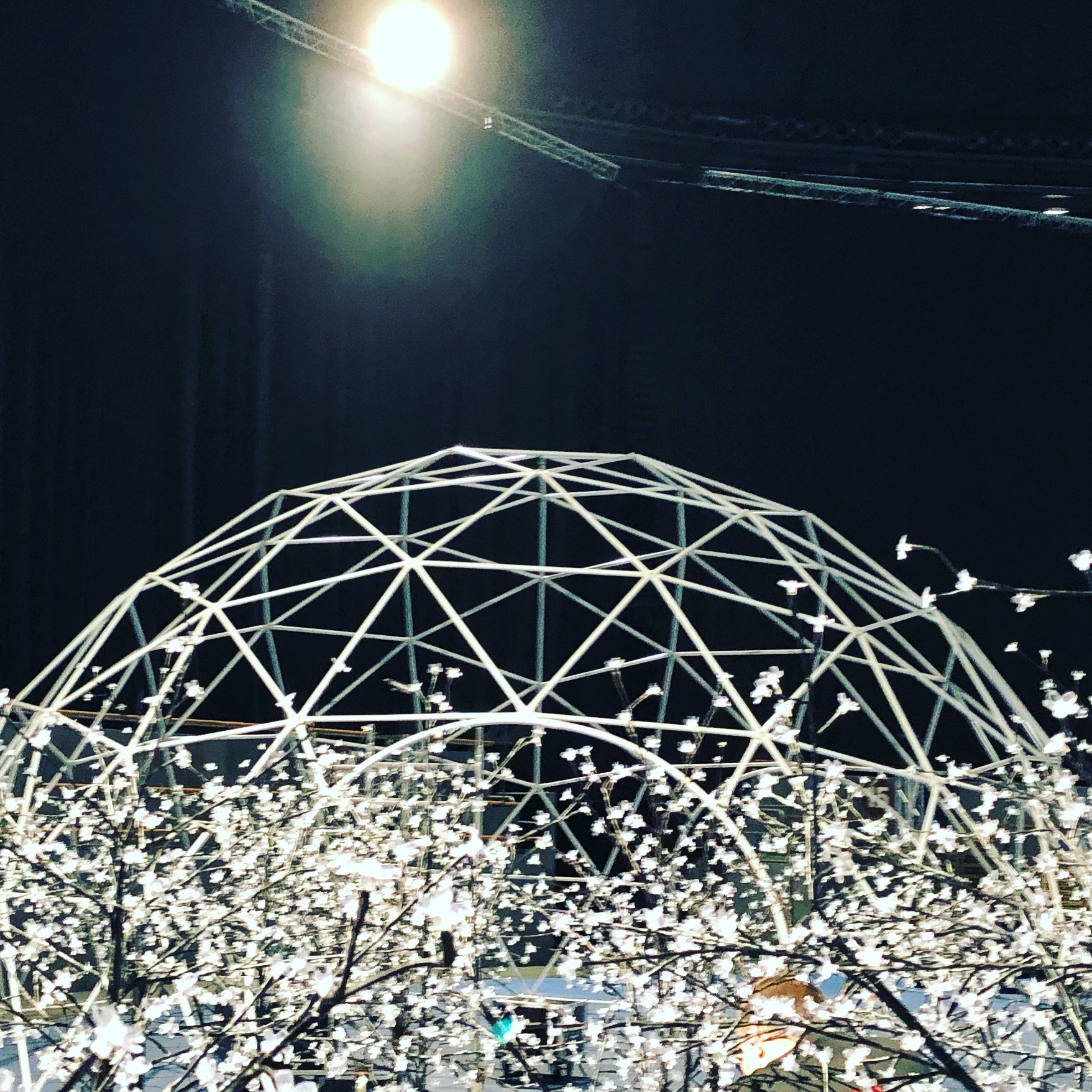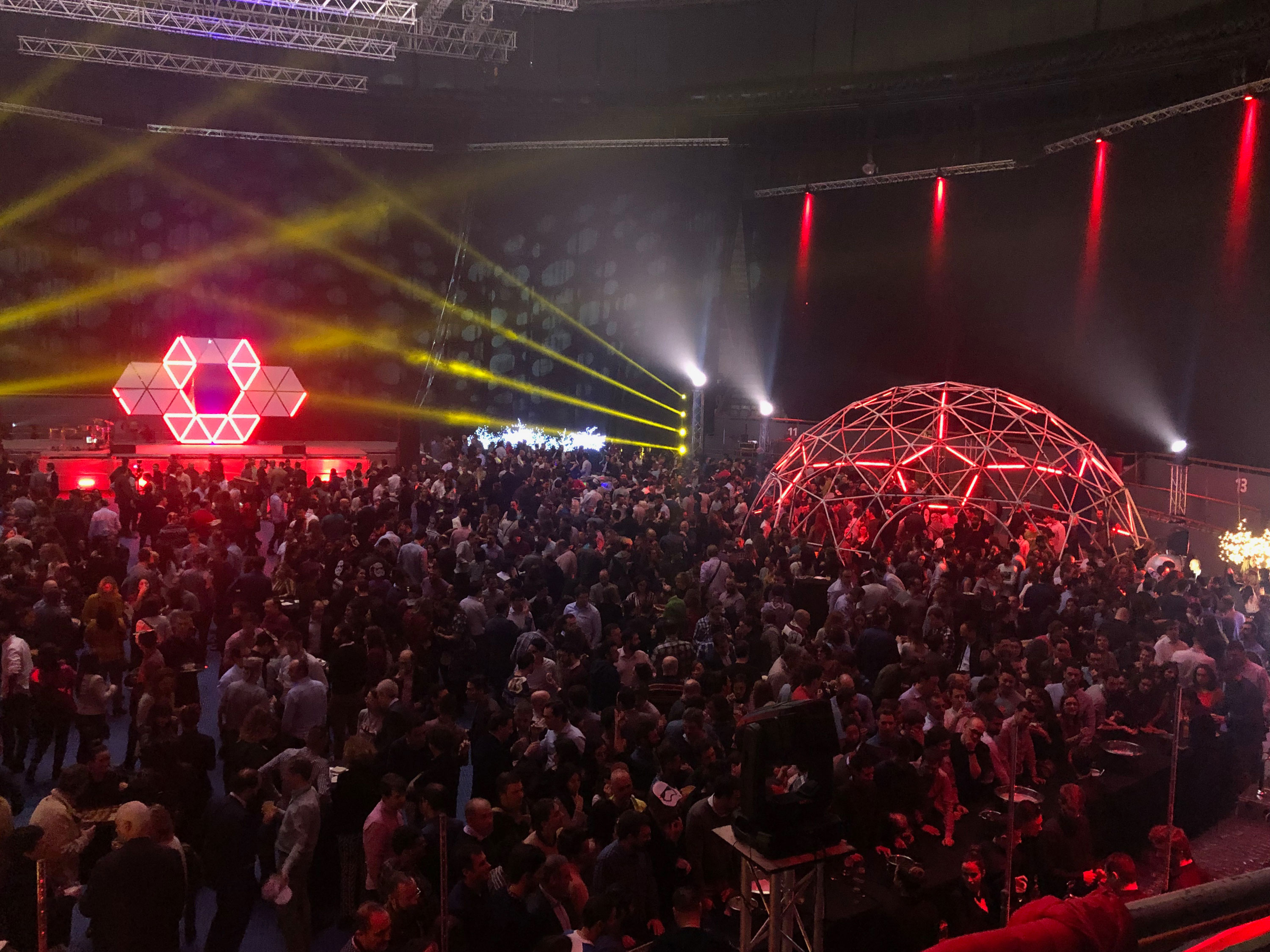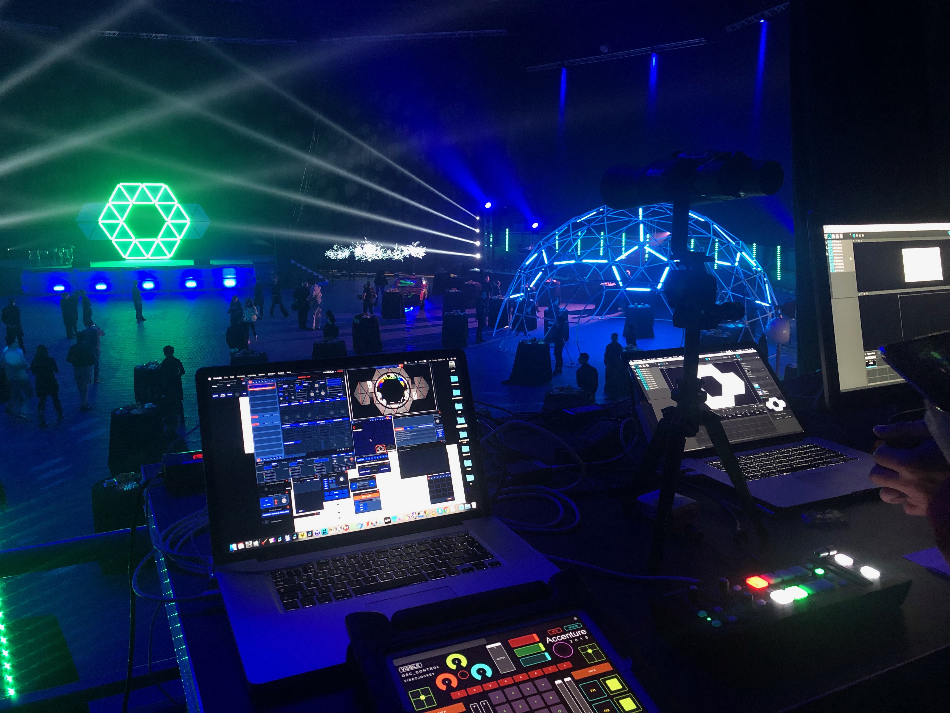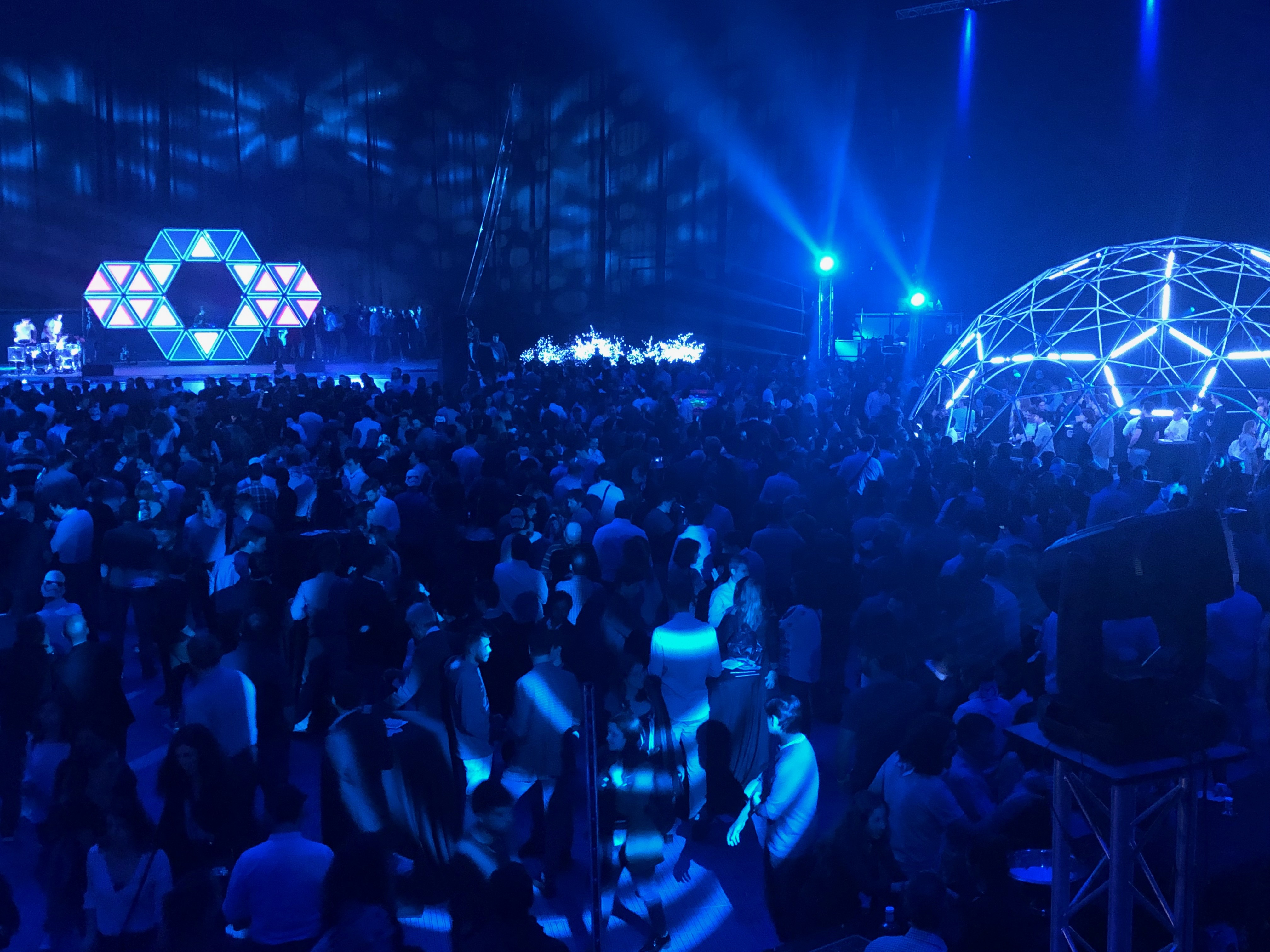 Os mostramos a continuación el resultado de unir un domo geodésico con luces de led controladas. Además el diseño del escenario principal basándonos en triángulos.