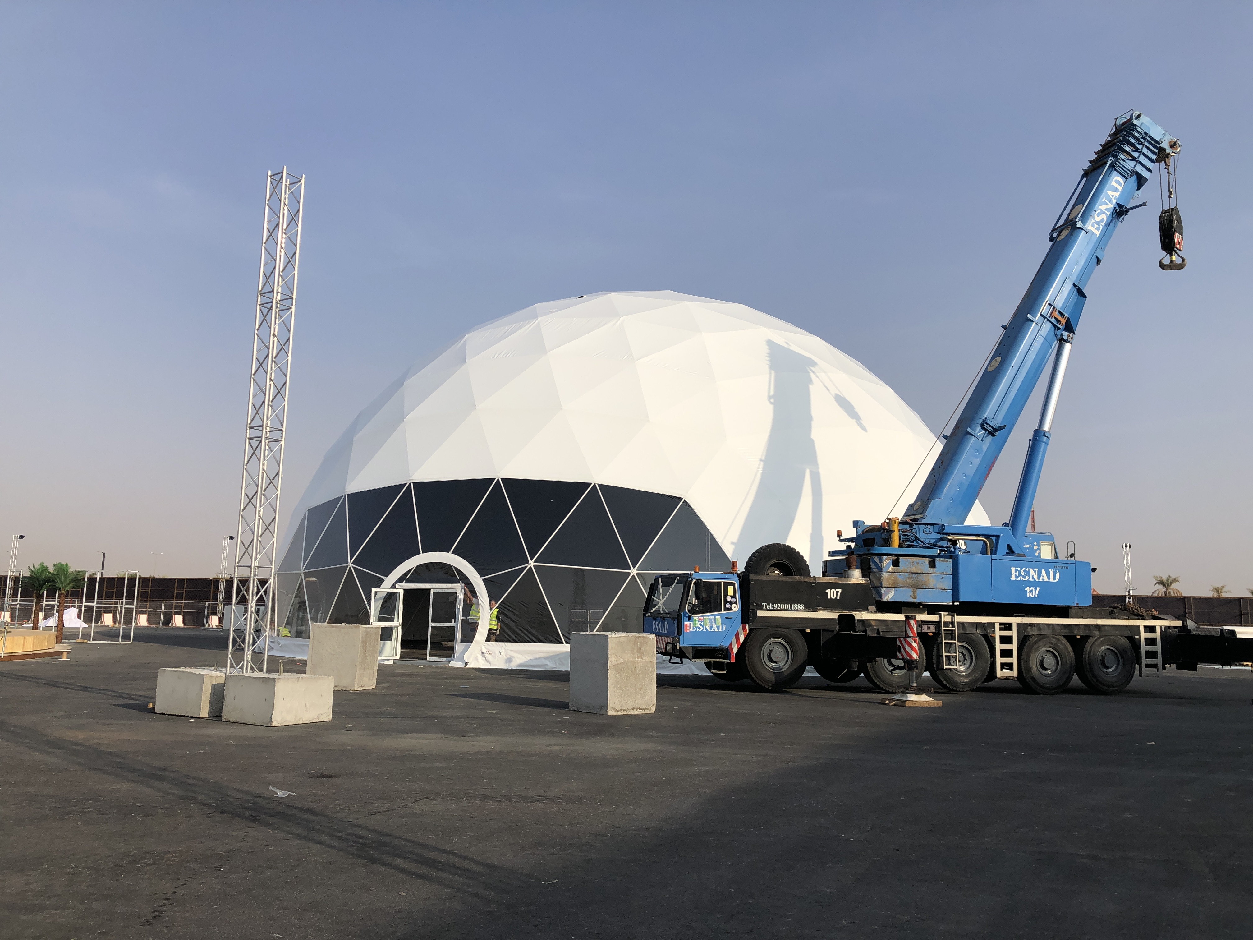 Os presentamos el último trabajo realizado. En este caso, un domo geodésico de 700 m2 con suelo para el MDL BEAST FESTIVAL  que se celebró en Ryad el pasado 19 de Diciembre del 2019.