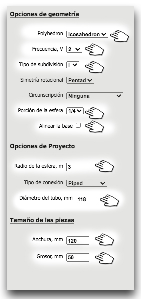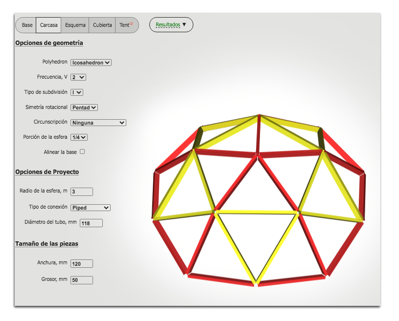 - La geometría en la que se va a basar tu domo (la más habitual es la basada en el icosaedro) o la que más gusta.