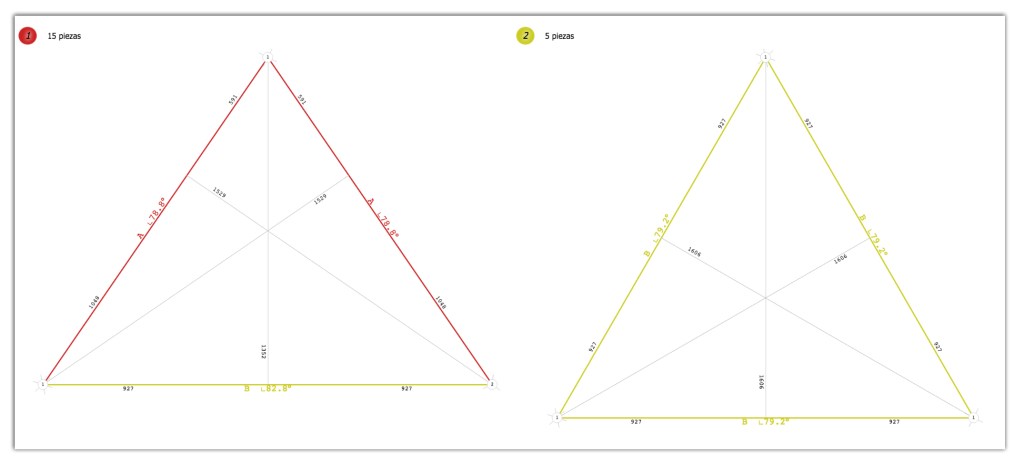 Mas abajo de la página también obtendrás la cantidad de triángulos y sus dimensiones por si deseas cubrir tu domo con algún material (OSB, plywood, plástico etc).