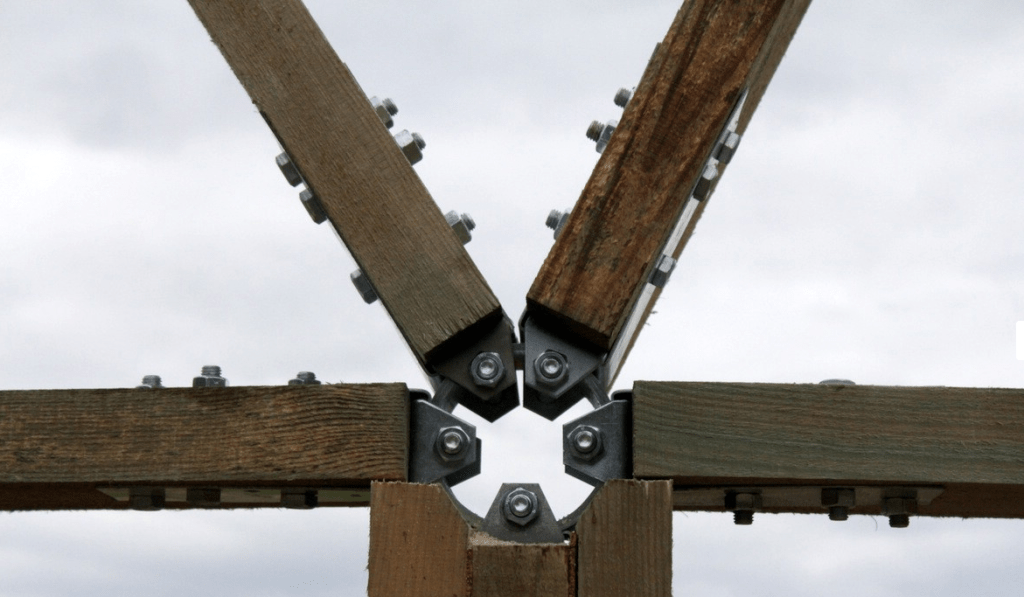 Una de las dudas más habituales en la construcción de domos de madera es la fabricación del domo con conectores o sin conectores. Hay personas que dominan los sistemas con sólo madera (goodkarma o similares) pero otras quieren utilizar sistemas más rápidos bien sea por su fácil montaje y desmontaje o porque quieren ahorrarse tiempo en taller al cortar madera.